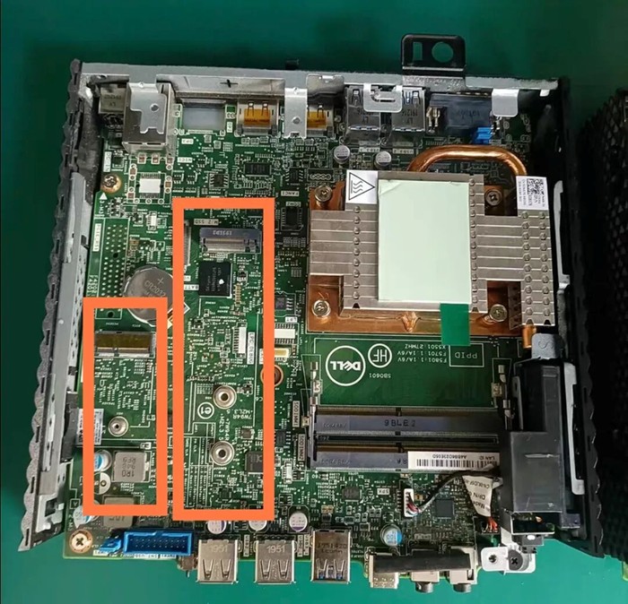 机器被动散热,有少部分的是带16g emm c的,但大部分都不带,这是sata协议的m2硬盘,还有一个m2WiFi网卡接口, M2wifi网卡可以扩展出来两个sata接口接sata硬盘!