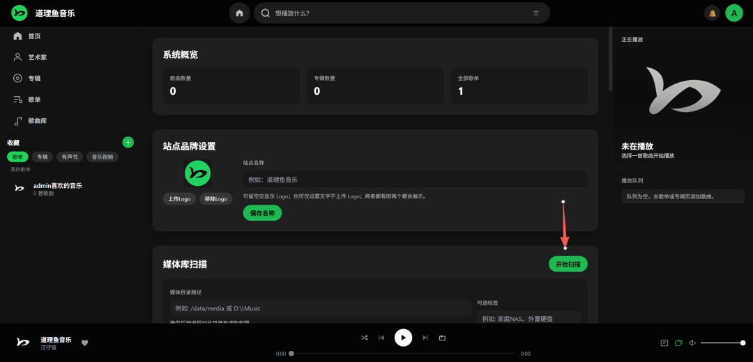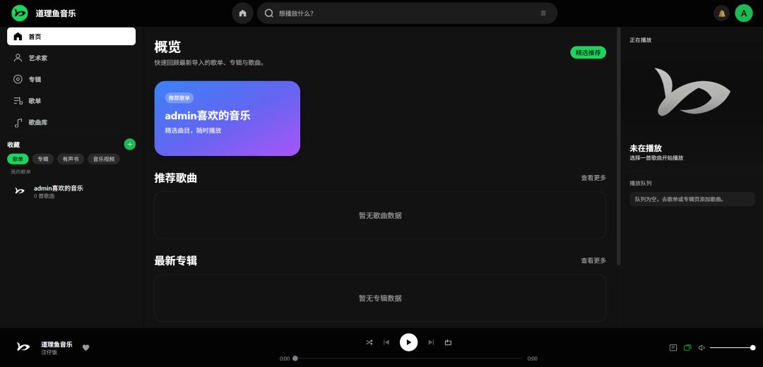 道理鱼音乐管理平台 作为一款面向 NAS 用户的全栈音乐系统,已经具备了从媒体扫描到播放、收藏、转码、通知等一系列实用功能。通过 Docker 快速部署,几步操作即可拥有属于自己的音乐空间。