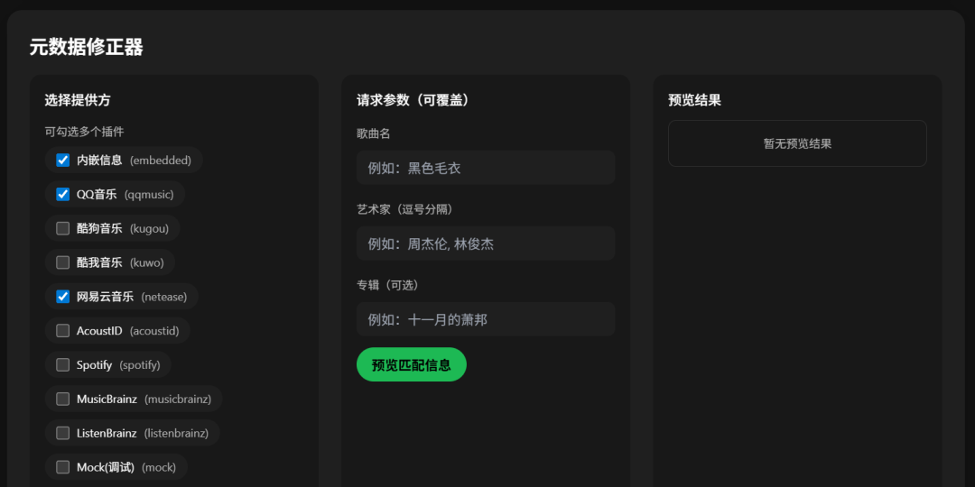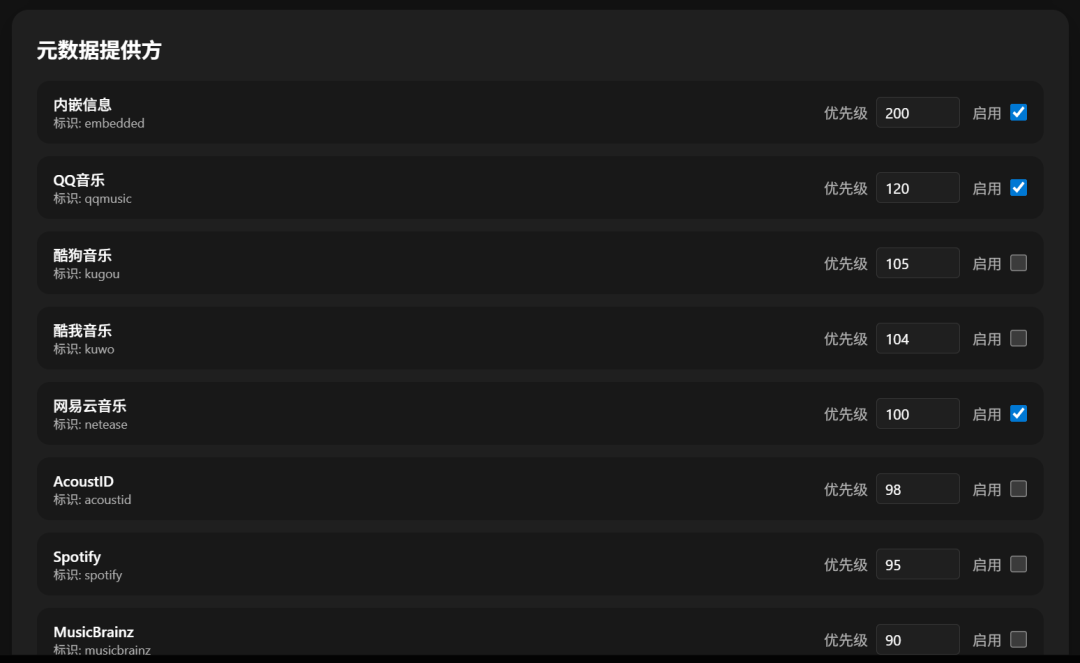 • 🧩 插件与元数据 :自动识别插件清单,支持多元数据源启用与优先级配置。