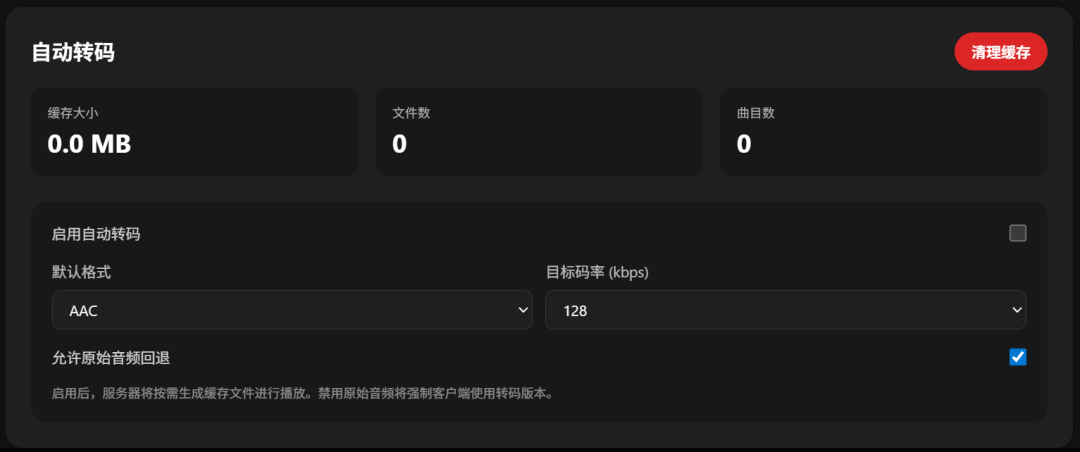 转码缓存 :集成 FFmpeg 实时转码,自动生成指定码率缓存并后台统计与清理。