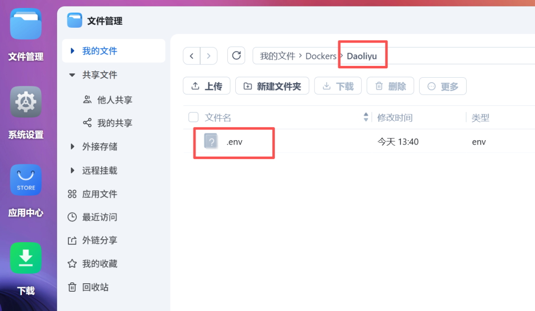 2. 上传 .env 文件到 飞牛部署 Docker compose 的相同目录