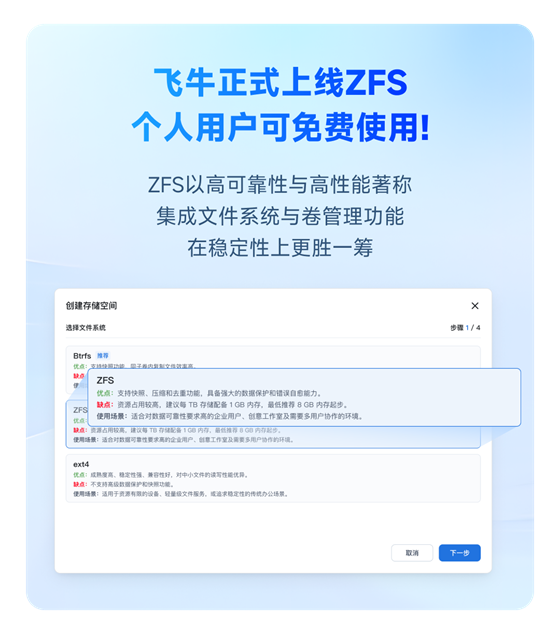 3.支持导入从其他 fnOS 设备导出的 ZFS 存储空间